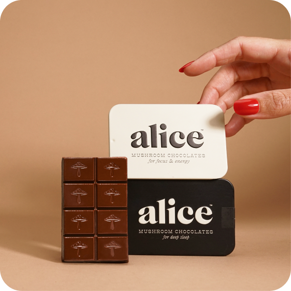 There are two things your sleep is often missing: true relaxation and chocolate. Alice has fixed this problem with Nightcap, a decadent post-dinner bite for a pleasant slide into a calm, restful rendezvous with your bed, without the next-morning grogginess of traditional sleep-aids.*