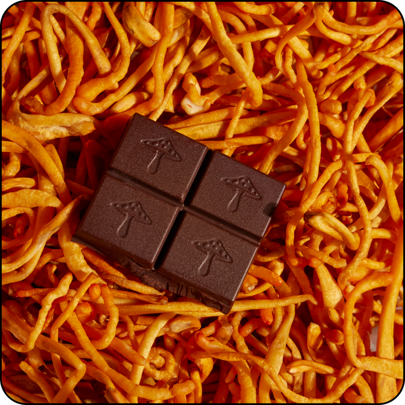 focus is a mind and experience. that’s why we have a medicinal dose of cordyceps mushrooms in each square of brainstorm. cordyceps works to boost blood oxygen levels to increase full body stamina, vitality, and energy.
