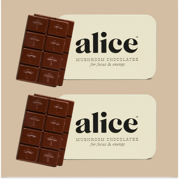 We have a simple motto at alice: indulge, don’t endure. We hated spending so much money on functional mushrooms in forms that didn’t taste good and were an effort to consume — and without consistent daily use, we didn’t feel their effects either. So we set out to create a wellness routine that was actually joyful, not one we felt like we had to force down. Every bite of alice is delicious which makes it a treat to eat every day. Say goodbye to unappetizing tinctures and powders sitting half-used on your counter and say hello to a decadent daily bite of chocolate with long term benefits you can feel.
