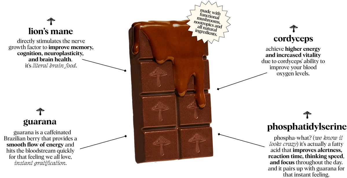 indulge in our once daily functional mushroom chocolate that tastes as good as it works*