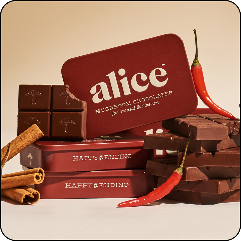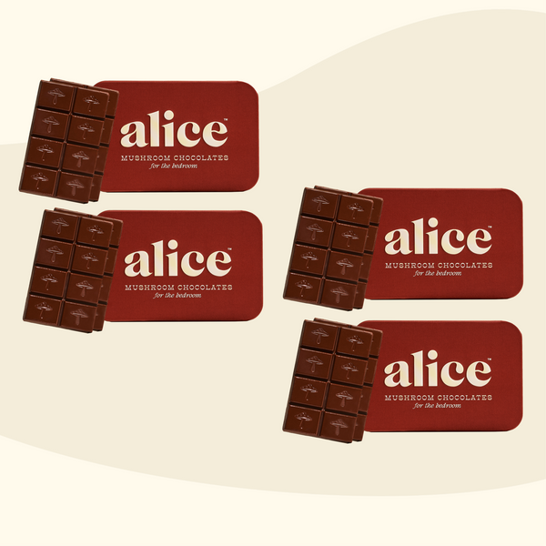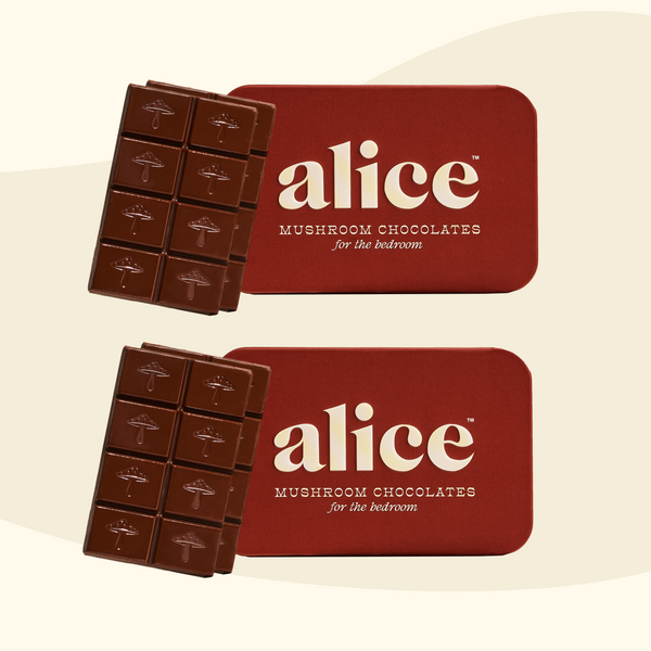 We have a simple motto at alice: indulge, don’t endure. We hated spending so much money on functional mushrooms in forms that didn’t taste good and were an effort to consume — and without consistent daily use, we didn’t feel their effects either. So we set out to create a wellness routine that was actually joyful, not one we felt like we had to force down. Every bite of alice is delicious which makes it a treat to eat every day. Say goodbye to unappetizing tinctures and powders sitting half-used on your counter and say hello to a decadent daily bite of chocolate with long term benefits you can feel.