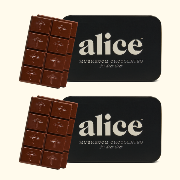 We have a simple motto at alice: indulge, don’t endure. We hated spending so much money on functional mushrooms in forms that didn’t taste good and were an effort to consume — and without consistent daily use, we didn’t feel their effects either. So we set out to create a wellness routine that was actually joyful, not one we felt like we had to force down. Every bite of alice is delicious which makes it a treat to eat every day. Say goodbye to unappetizing tinctures and powders sitting half-used on your counter and say hello to a decadent daily bite of chocolate with long term benefits you can feel.