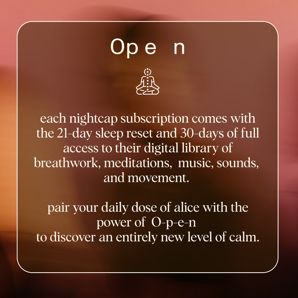 pair your daily dose of alice with the power of Open to discover an entirely new level of calm.