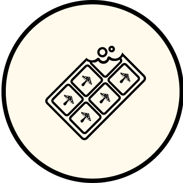 Fairly traded organic dark chocolate, organic Lion’s Mane and organic Cordyceps from 100% fruiting body mushrooms, guarana and phosphatidylserine. Each square contains 66mg of natural caffeine which is equivalent to ⅔ cup of coffee.